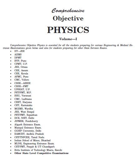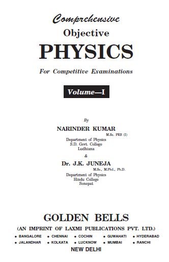 Comprehensive Objective Physics for IIT JEE NEET Competitive Exams Volume 1 one by Narinder Kumar